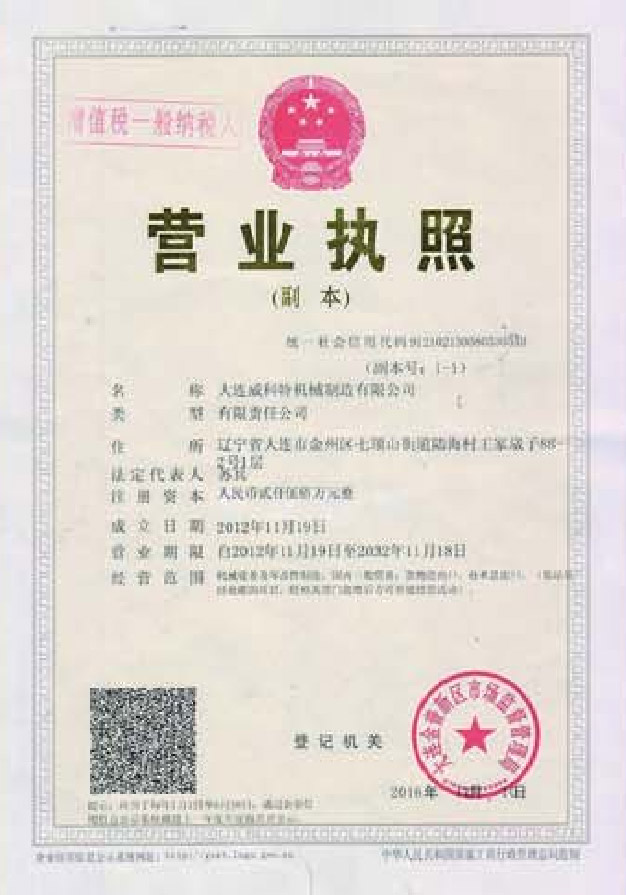 大連威科特成立于2003年,2012年搬遷至大連金州經(jīng)濟技術(shù)開發(fā)區(qū)。公司注冊資本2500萬元,占地面積25000m2,辦公地點位于大連開發(fā)區(qū)遼河西路73號融通大廈。公司現(xiàn)擁有員工68人,中高級職稱人數(shù)15人,技工30人以上,公司已通過ISO9001:2015質(zhì)量管理體系認證,擁有多項專利技術(shù),經(jīng)過多年的發(fā)展,逐漸形成了一支素質(zhì)過硬、制造經(jīng)驗豐富的管理、技術(shù)和生產(chǎn)團隊,保證了公司的持續(xù)發(fā)展和創(chuàng)新能力。